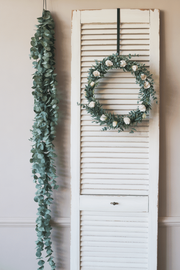 Lean or hang vintage windows, doors, or shutters behind a console or mantel. Add a garland or wreath for a spring farmhouse vibe.